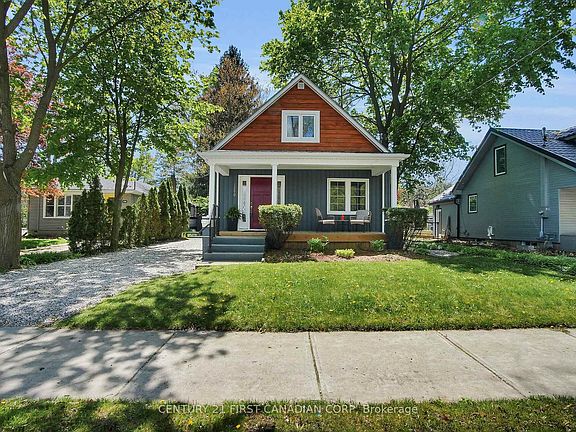 Step into this beautifully renovated 1.5-storey gem in the heart of Byron, where every detail has been meticulously crafted to create the ultimate retreat! With a complete top-to-bottom renovation, this home combines timeless charm with modern sophistication, making it a true showstopper. Featuring 2 cozy bedrooms, including a versatile room with a built-in Murphy bed, plus a spacious primary suite tucked away in the half-storey with a full wall of closet storage and brand new pot lights. Two sleek, modern washrooms with fresh finishes complete the living spaces, while crown molding, tall baseboards, and pine shiplap walls add character throughout. Enjoy the luxury of new, high-end finishes: luxury vinyl plank flooring, newer windows, new interior doors and a fresh coat of paint in beautiful classic shades. The sunroom, with its gas fireplace and built-in storage, invites you to relax and unwind in style. The heart of the home? A completely redesigned kitchen featuring stainless steel appliances, a gas stove, a microwave rangehood, a large undermount sink, and stunning quartz countertops-perfect for cooking up a storm or hosting friends. The cozy lower level includes a family room, plus ample storage space to keep everything organized. Outside, a large, fully fenced yard offers a firepit and deck for entertaining on warm, evenings, while the shed with hydro is an ideal space for hobbies or DIY projects. Tucked away on a quiet street, this home feels like a peaceful oasis, yet you're just minutes from Springbank Park, Boler Mountain, restaurants, shopping, and schools. With a new roof (2017), furnace and AC (2022), plus all new appliances, siding, and insulation (2023), there's absolutely nothing left to do but turn the key and enjoy one of the most sought-after neighborhoods in London. Don't miss your chance to call this Byron beauty home!