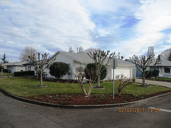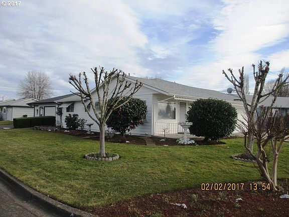 Wonderful home on corner lot located in Woodburn Senior Estates golf community, move in ready with central A/C, 2 Bedrooms/1.5 Baths and additional large bonus room. Large covered patio. Enjoy all the 55+ HOA amenities: clubhouse, swim pool/spa, exercise, restaurant, library, billiards, cards, meeting rooms. $550 annual HOA fee, Buyer paid $3,000 HOA deed transfer fee at closing.HOA application required.Property sold in AS-IS condition.