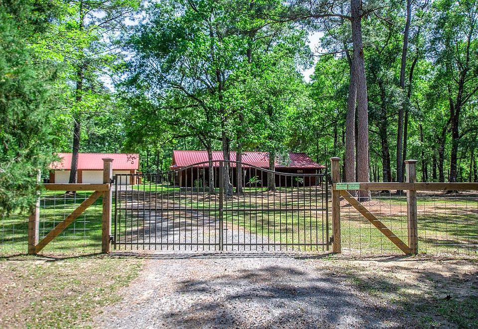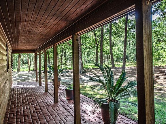 COUNTRY LIVING AT ITS FINEST! ON 8.54 TREE SHADED ACRES WITH PINES AND OAKS IS THE MOST CHARMING HOUSE WITH LOG SIDING NESTLED IN A LOVELY SETTING WITH COVERED PORCHES. THE HOUSE WAS BUILT IN 1993 AND HAS A BEAUTIFUL UPDATED KITCHEN WITH GRANITE COUNTERS, UNDER COUNTER MOUNT DOUBLE SINKS, STAINLESS STEEL APPLIANCES, BREAKFAST BAR, GAS STOVE, CUSTOM CABINETRY WITH GOOD STORAGE. LOTS OF WINDOWS ADDING NATURAL LIGHT, LARGE DINING AREA WITH BAY WINDOW, AND NICE LAUNDRY ROOM. THE LIVING ROOM IS VERY SPACIOUS WITH BEAMED CEILING, WINDOWS OVERLOOKING THE YARD, WOOD BURNING STOVE AND BUILT-IN BOOK SHELVES. DOWN THE HALL ARE THE 2 GUEST BEDROOMS AND GUEST BATHROOM WITH TILED TUB/SHOWER & GRANITE COUNTER. THE OWNERS BEDROOM W/ VAULTED CEILING & DOOR TO THE BACK COVERED PATIO - PERFECT FOR WILDLIFE VIEWING AND RELAXING. WALK-IN CLOSET AND UPDATED FULL BATH WITH DOUBLE SINKS, GRANITE COUNTER, AND A LARGE TILED WALK-IN SHOWER. ALL THE FLOORING IS TILE. 3 CAR GARAGE, OUT BUILDINGS.