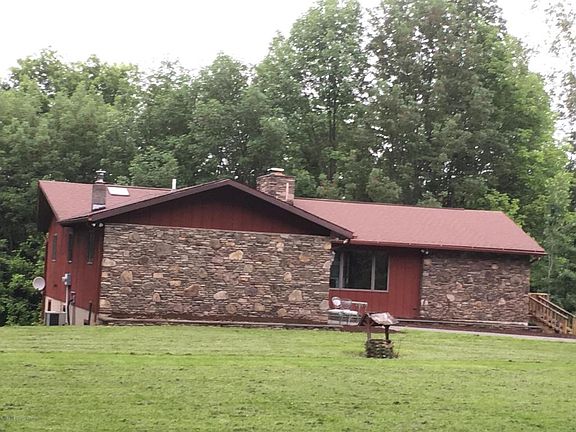 Beautiful ranch home with stonework on the front and large wraparound deck on 3.78 acres. This home has an attached 2 car and detached 2 car garage, paved driveway, large yard, and pond. Newley remolded 5 bedroom, 3 bathroom home, including new carpeting, bathroom and kitchen improvements, and more. Finished walk out basement with rec room, including pool table and lower level second kitchen.The open living room dining room area has a stone fireplace and cherry wood accent wall. Kitchen is finished with cherry wood cabinets to match as well as new appliances. Master bedroom includes walk in closet and master bath. Home also includes a black walnut bathroom vanity, stairs, and accent wall. Move in ready and priced for quick sale. Owner/Agent