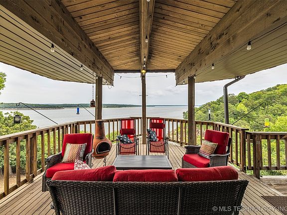 This spectacular Mid Century Modern lake front home boasts tons of unique character & quality throughout and is a true entertainers home! Designed by A. Blaine Imel who studied under Bruce Goff, this home is truly a treasure to behold. The views of the water and natural landscape are at every turn and can be enjoyed from the indoors or one of 4 multi-level decks. Upon entry you are greeted with an open floor plan of the kitchen, dining area and sitting area with a center fireplace conversation area. Continuing from there is an addition that continues the MCM style with a spacious game and entertainment area with a projector and movie screen. Included are thoughtful built-ins and a wet bar with a keg fridge, tap and in-counter glass rinser. In addition to the 3 bedrooms, 3 full baths, & 2 living areas there is an indoor hobby/work room and exercise room. The home has been thoughtfully updated without sacrificing the original MCM character of the home. All new windows & sliding doors by "Thermal Windows of Tulsa", New decks, 3 central H&A and 1 split system, 2 water heaters (one is tankless) & so much more! And the storage throughout this home will blow your mind! Included is the vacant lot on the west side. View pictures for captions of room and area highlights. This home will come complete with the original architectural drawings.