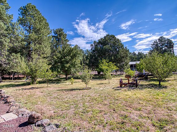 Welcome to this rare gem of a home nestled in the heart of Show Low with No HOA. Situated amidst the breathtaking backdrop of towering pines, this property offers the perfect blend of tranquility and convenience. As you step inside, you'll be greeted by a warm and inviting interior filled with natural light. The spacious living area is perfect for gatherings and the kitchen boasts newer appliances, ample storage space and beautiful Granite Countertops. Outside, the property truly shines. An orchard graces the landscape with Red and Green Grapes and a variety of fruit trees. The fully fenced yard provides a secure space for children and pets to roam freely, while horse enthusiasts will appreciate the opportunity to bring their four-legged companions. Full RV Hook Up with Sewer Dump. The highlight of this home is the large peaceful deck, where you can unwind and take in the serene surroundings. Whether you're sipping your morning coffee or hosting a barbecue, this space is perfect for enjoying the cool mountain air.