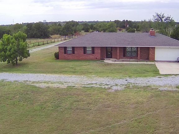 Nice Family Home! Close to town and includes 20 acres of grassland with some trees. Pipe and cable fence around the yard, large area to build your shop, or other useful outbuildings! Living room has woodburning Fireplace, with bookshelves and cabinets surrounding it. Large kitchen with lots of cabinets for storage. Electric cookstove, vent hood, dishwasher. Gas hotwater heater. and Central Heat. Utility room has enough space for freezer and office space. Dining room has Double doors that open out to the covered patio. Primary bedroom is huge, King bed & more fits well here. bathroom has tub/shower combo. This room also has doors opening out to patio. Call Debbie Lynn Benton with Marlow Real Estate for information and showing. 580-658-1177