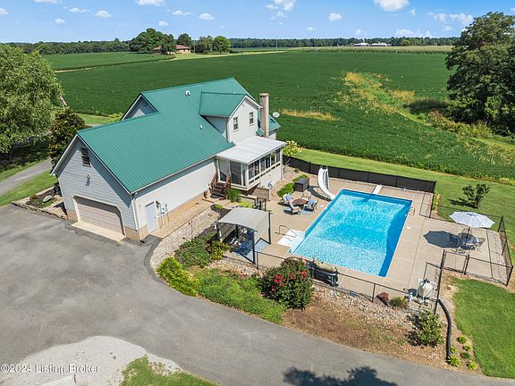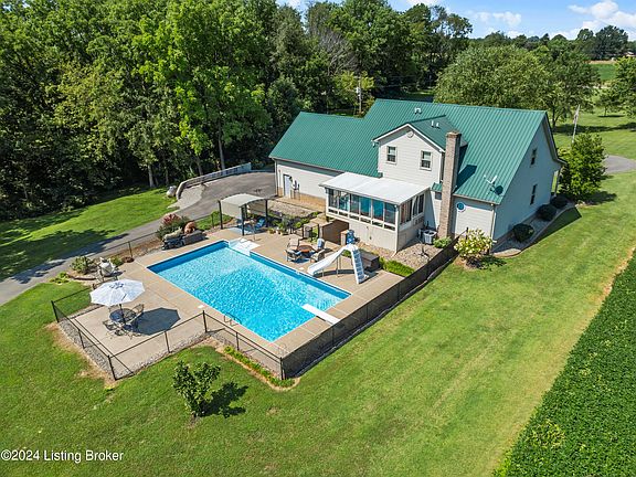 Location at its best, just minutes from I-65, Western Kentucky Pkwy and Bluegrass Pkwy, Hospitals, Malls, Restaurants, Blue Oval Plant, Fort Knox, Elementary (New), Middle and High Schools, and much more...This Amazing Homes of over 4300 SF, 4 Bedroom, 3.5 Baths, 2 car attached Garage additional detached 2 car GARAGE and 2 carports, in-ground pool with concrete huge patio, is situated in a Private Country Setting with over 5 acres (1.5 acres are wooded) which is surrounded by agricultural land, providing total privacy, amazing views, creek in wooded area, child play area, and dead-ended street!! This show stopping open floor plan is perfect for gatherings! Entering the spacious Foyer, you will be greeted by a HUGE GREAT ROOM that opens to the All-Season Sunroom as well as the Large KITCHEN! This Kitchen boasts loads of cabinetry to included large pantry, granite countertop, desk workstation, breakfast island with bar seating and top of line stainless steel appliances. The large Dining Area and Half Bath complete this entertaining jewel. The spacious 1st Floor Master Suite is adjoined by a newly renovated spa-like Master Bath with double sink vanity and cabinetry to accommodate storage, granite counter tops, then relax in HUGE walk-in shower or soaking tub, and finally A LARGE walk-in closet. To complete the first floor is the Laundry Room with cabinetry, counter space and laundry sink. The 2nd Floor has 3 additional large Bedrooms with Full Bath that offers a separate vanity and private shower, and bonus room. The finished walk-out Basement with Fireplace was custom designed with a HUGE Family Room, 2 additional Rooms which can be used as Bedroom, Office, Gym or additional storage, Full bath with shower is located next to the Patio doors walking out to the fenced in-ground Pool with slide and diving board. One additional Bonus to this outstanding Property is NO HOA Rules and Outrageous sewer bills!!! This Spectacular, Charming Home with many updates (See full list of updates and renovations attached to this listing) awaits it new family, with so much to offer.