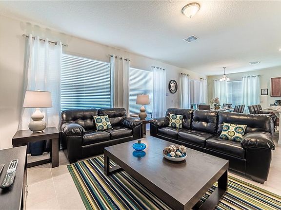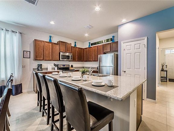 This newly built wonderful 6 bedrooms 6 bathroom home in the West Haven area is just minutes from Disney & Champions Gate shopping area. This home is absolutely perfect for families. The home has two large lounge areas for everyone to spread out and relax. The upstairs lounge also has a foosball table and sitting area. The upstairs also has a separate game room with a billiard table. Three of the bedrooms have their own private bathrooms for guest convenience. The other two bedrooms upstairs have separate bathrooms making it easy for everyone to quickly get ready for a fun day in Orlando. The large kitchen area is perfect for entertaining with a large island counter with bar stools in the middle. There is also a dining table as well as additional dining area poolside under the lanai.