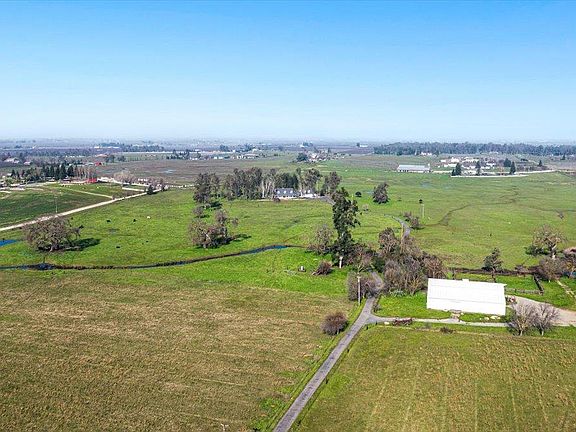 Discover expansive rural living in Galt with this exceptional nearly 80-acre ranch spanning two parcels of productive, flood-irrigated pastureland. A seasonal creek winds through natural grasses, creating an ideal setting for livestock, agriculture, or future equestrian use. The property is thoughtfully equipped with livestock corrals, a large barn/workshop, and an attached studio apartment featuring a full bath, kitchen, and separate septic well suited for guests, caretakers, or ranch operations. Two wells plus an agricultural meter provide ample water for a wide range of agricultural and rural uses. The custom 3-bedroom, 3-bath main home offers approximately 2,335 square feet of versatile living space. Brand new interior updates include new luxury vinyl plank flooring throughout the downstairs, fresh interior paint, and removal of all wallpaper, giving the home a brighter, more modern feel. The floor plan features a spacious great room, formal dining area, double ovens in the kitchen, and split HVAC for year-round comfort. A primary suite is conveniently located on the main level, while an upstairs loft and additional bedrooms provide flexible space for work, hobbies, or storage. The attached multi-car garage includes an upstairs 590-square-foot area that could be adapted for office, studio, or additional living space. With its size, water resources, and infrastructure, this Galt ranch offers exceptional flexibility for a variety of potential usesincluding cattle grazing, horse property, boutique vineyard or winery, orchard development, hobby farming, agricultural production, or continued pasture leasing. Whether you envision a working ranch, recreational retreat, or long-term investment, this property delivers rare opportunity and scale in a desirable Galt location.