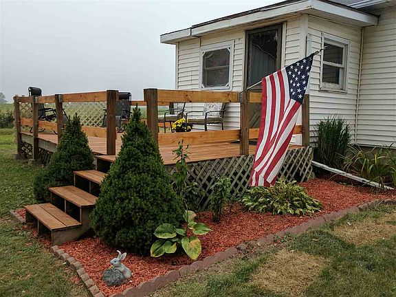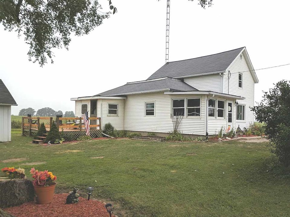 Slow pace, small town living is fulfilled here in this three bedroom farm style home. The low traffic road and rolling crop land give a feeling of seclusion. Really this home is only two miles from town. There is a 19x15 shed for all your yard items and another out building that could be used as a coop or kennel. The best outdoor feature is the 10x20 deck. Kick back overlooking approximately 2.5 acres. Watch a wide variety of birds, deer, foxes, squirrels, bunnies, and all other kinds of wildlife. Walk inside through the enclosed porch that doubles as a mudroom. Then find an eat in kitchen updated white cabinetry and new flooring. Laundry room with pantry off the kitchen. The living room, main bedroom, and bath are painted with a modern neutral color palette. Upstairs find two additional bedrooms. Large enough for a bed, nightstands, and dressers. Home will qualify for all forms of financing. Schedule your appointment to see today.