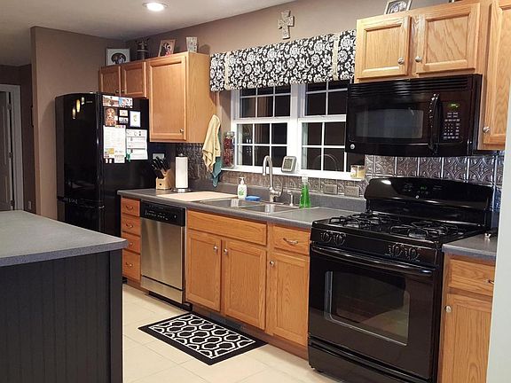 Welcoming foyer brings you to this spacious ranch home. 4 bedrooms, 2,016 Sq. Ft home has been updated throughout with newer laminate wood and tile floors, doors and trim, and aesthetically pleasing paint colors. Kitchen has tin/nickel look backsplash, modern appliances, and center island. Master bedroom has large private bath and substantial walk in closet. The 3 other bedrooms are larger sized and 2 offer walk-in closets as well. Harman Pellet stove installed in 2014, in living room helps offs et heating costs. 2 stall garage is 28x24. Fenced in backyard on 1.57 acres