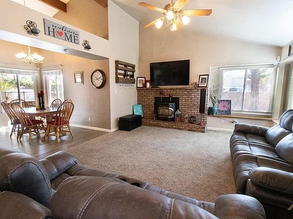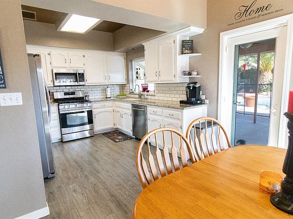 Take a look at this beautifully updated 4 bedroom 2 bath home located just minutes from Cal state and River walk park. This home has been extensively updated with granite counter tops in the kitchen with subway tile back splash, stainless appliances, refinished cabinets, new wood look tile flooring, new windows, updated carpet in living room and bedrooms, ceiling fans throughout and so much more. The master bathroom has updated shower, granite counter tops, wood flooring in the master bedroom, security screen doors and a new roof. There is a large rv parking area with 30 amp service and plenty of room for even the largest rv. Did I mention there is a sparkling with a beautiful water fall and block wall fencing and 10.95 kw solar system. This home is ready for a new owner and it won't last long.