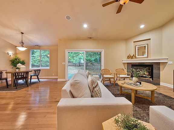 Seller Financing Available! Must-See custom 3 Bedroom, 2 Bath Home on a Full Acre. Built in 2000, this beautifully updated residence offers just under 2,000 sq. ft. of stylish living space on a level one-acre lot. The thoughtfully designed floor plan features an open-concept great room with high ceilings, gas heating cozy fireplace and a seamless flow between the living, dining, and kitchen areasideal for both daily living and entertaining. The remodeled kitchen is a true centerpiece, boasting sleek stainless steel appliances, built-in double ovens, a gas cooktop, abundant counter space and ample cabinetry. Whether preparing everyday meals or hosting gatherings, this kitchen provides both function and elegance. The spacious primary suite includes a walk-in closet and a fully remodeled en suite bathroom with soaking tub & high-end spa inspired shower. Two additional bedrooms and a second full bath are set apart in the bedroom wing. Extra wide/deep garage with overhead storage, plus whole house vac. Set in a location that feels private yet remains close to town, this home is also walking distance to miles of trails perfect for biking, jogging, and hiking. Combining modern amenities with a serene setting, this is a very special home you won't want to miss.