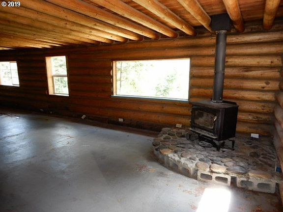 Price Reduced for this Log Cabin in the woods. Spacious log cabin featuring 2 bedrooms and deck on 2nd level located on 9+ private wooded acres. Open kitchen, dining and living room with large family room on main level. Access road in poor condition.