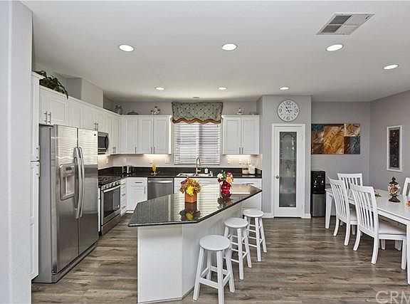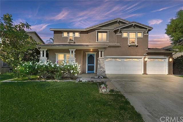 Welcome to Eastvale! Listed as one of the best places to live in California by MONEY Magazine. Here is your opportunity to thrive in a spacious two level abode located on a highly desired cul-de-sac. A cozy front porch welcomes you back after a long day away. This is a turn-key home - nothing to do but move in and start living. This great floor plan boast a formal living room and dining room to use as you wish. The hub of the home is the remodeled kitchen complete with stainless steel appliances, center island that makes a great breakfast bar, a pantry closet, white cabinets and striking dark granite counters. Adjoining the kitchen is the informal living area complete with warm gas-flamed fireplace. What completes the lower living area is the much sought after downstairs bedroom and 3/4 bathroom plus access to the 3 car garage. On the 2nd level you will find a spacious Owner's Suite complete with a sizable bathroom that features a separate shower, bubble-bath ready oval tub, dual sinks, large walk-in closet and a view to the mountains - beautiful when there is snow-capped peaks! Two more ample bedrooms & a full bath are found on the 2nd level plus the laundry room and a BONUS living area (make it a game room - tv area - study place, always great to have choices!) Quality flooring throughout. Enjoy the peaceful rear yard with it's covered patio to provide shade while you enjoy the rose bushes - it will brighten your days. Eastvale is one of the newest cities in Western Riverside County - a commutable drive to the OC and LA. Strategically located close to the 15, 91, 60, 10 & 71 only a few short minutes to Ontario Airport. Got Kids? Located in the Award Winning Corona - Norco School District this home sits close by to Roosevelt High, River Heights Intermediate & Eastvale Elementary Schools making it perfect for those with kids. Plus we need to mention the multiple parks, a variety of shopping & restaurant, premier soccer fields, there is a lot of pride in this community and much more. This home and the great neighborhood has to be seen in person - Come visit today - You will be glad you did!
