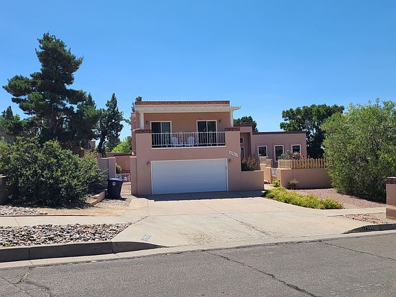 GEM ALERT! Corner lot, VIEWS, steps from the foothills. Walk off dinner in paradise every evening! Long time loved, upgraded, split level, 4/3 home with 2 living, 2 dining, 3 balcony patios, REFRIG AIR & TPO roof! Main level is open & beautiful! Living rm has windows looking at Sandias, open to dining area. Kitchen has been thoughtfully recreated w/ granite, cherry cabs, stainless app, island w/ storage, pantry, wine rack, space for table, door to BY. Primary & 2 spares are upstairs. Primary is spacious w/ lg walk in closet, bathroom has 2 sinks, shower/tub. Slider to outoor lg balcony. 2 bedrms both have sliders to balcony views galore! Downstairs bonus living rm, 3/4 bath, 4th bedrm. Living has fancy gas FP, door to BY. Utility rm has sink, rm for fridge. Many more Goodies!! Come SEE!