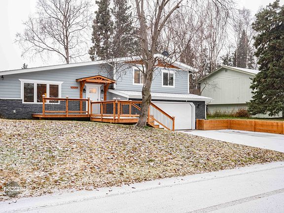 Lovely tri-level home in South Anchorage. Feels brand new! Open living area, tall kitchen cabinets, granite counters. LVP flooring w/ radiant infloor heat. Family room w/ sound proofing. Newer windows, roof, & on demand boiler. Fenced yard, concrete patio & underground sprinkler system. Decks front and back. Shed w/ electric. Pets on approval.