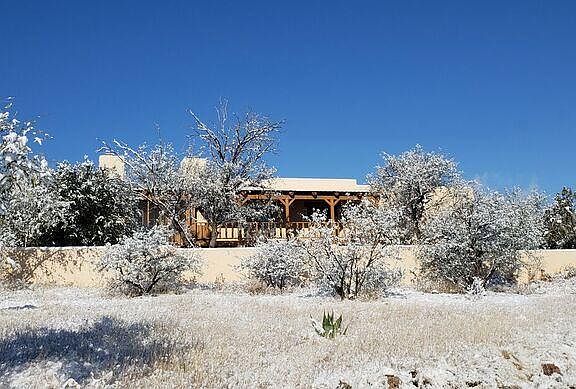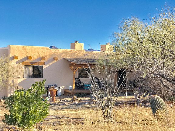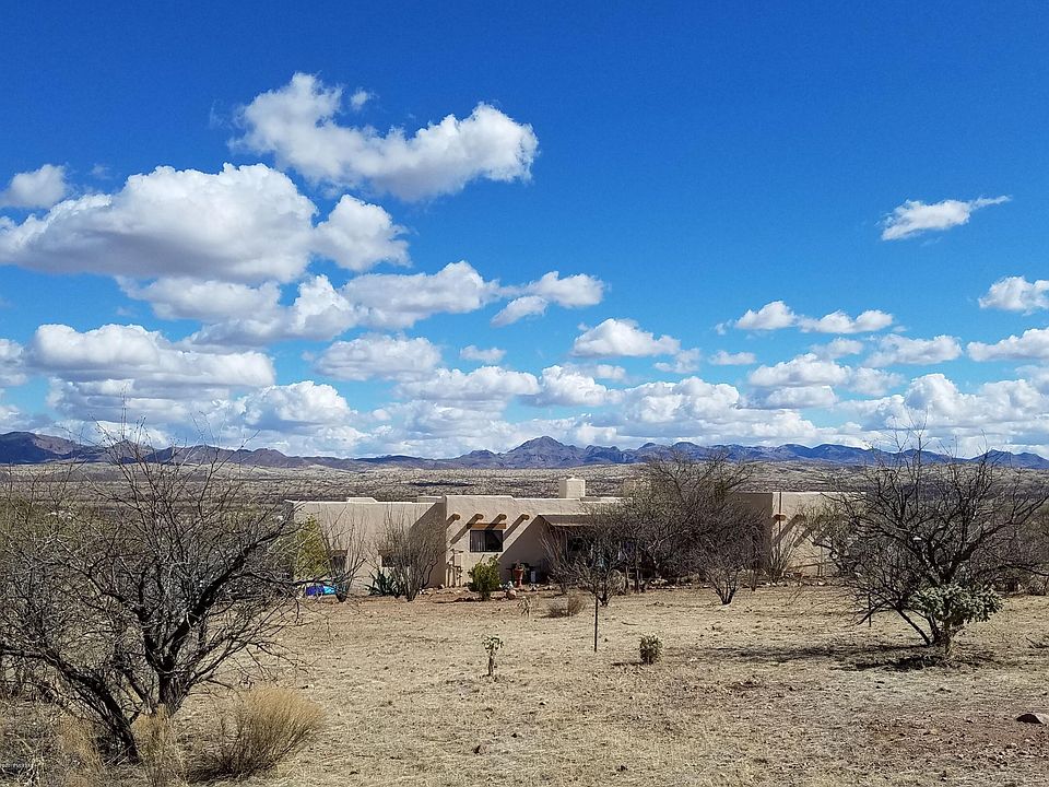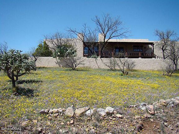 Enjoy authentic western ranch living on this beautiful 4.9 acre property that features magnificent sunrise and sunset views. It borders state land and is just 30 mins, from Green Valley. Santa Fe home features 3 bdrm, 2 ba rooms, wood-burning fireplaces in living room and master bdrm, gently vaulted and beamed ceiling, Arizona room, large 2 car garage with overhead storage, new A/C with heat system with 10-year warranty installed in spring of 2019, new stove. A 3 part barn includes guest area w/brdm, living room/kitchen w/running water, covered carport with large air-tight storage room with feed area and paneled horse corral. Have your coffee on the covered house porch above a walled-in yard which faces the lovely eastern mtn view.