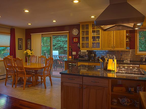 Quality updates throughout! Stunning Brazilian Tigerwood flooring. 95% efficient boiler in 2009, 2010 upgraded insulation, exterior doors, windows, water heater, vents and fans in bathrooms. 2014 beautiful quartz kitchen counters, and high end stainless steel appliances. Wired for Ethernet & home theater. Spacious rear deck with built under & fully enclosed storage. Manicured lot, many perennials All triple pane windows. RV parking. This is not a drive by and You NEED to see this kitchen.