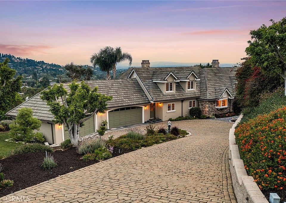 This is the 'single story view home' you've been looking for! Rebuilt in 2006 this beautiful craftsman-style home in the hills of North Tustin features 3,210 sqft of mostly single level living. Enjoy your main floor master retreat, two additional guest rooms, and 3 bathrooms all on the first floor and an office and loft on the second floor. Nearly every room takes in the captivating view of this expansive property. High-quality upgrades include new Pella windows and doors, a gourmet eat-in kitchen with a butler’s pantry, remodeled bathrooms, custom built-ins, soaring ceilings, skylights, abundant walk-in dormer storage and much more. The formal dining room and living room share a dual-sided fireplace, while walls of glass frame the peaceful views. The gourmet kitchen opens to a dramatic great room with vaulted ceilings and second fireplace, perfect for entertaining. This space flows effortlessly to the tranquil backyard, complete with wrap around patio, spa, built-in BBQ, grass yards, winding garden trails, and a pergola, all surrounded by avocado and fruit trees for year-round al fresco living. The primary suite offers a firelit seating area, spa-like bath, and a customized walk-in closet opening to a side yard. Additional features include a four-car attached 1,000 square foot garage and a charming garden shed that mimics the home's design, ideal for a playhouse or extra storage. The cobble stone driveway is designed with plenty of parking and room to maneuver. Located within the prestigious Tustin school district with top schools, this exceptional view property promises a lifestyle of quality, privacy and sophistication. Discover the unmatched charm and elegance of 12901 Barrett Lane—your dream home in North Tustin awaits.