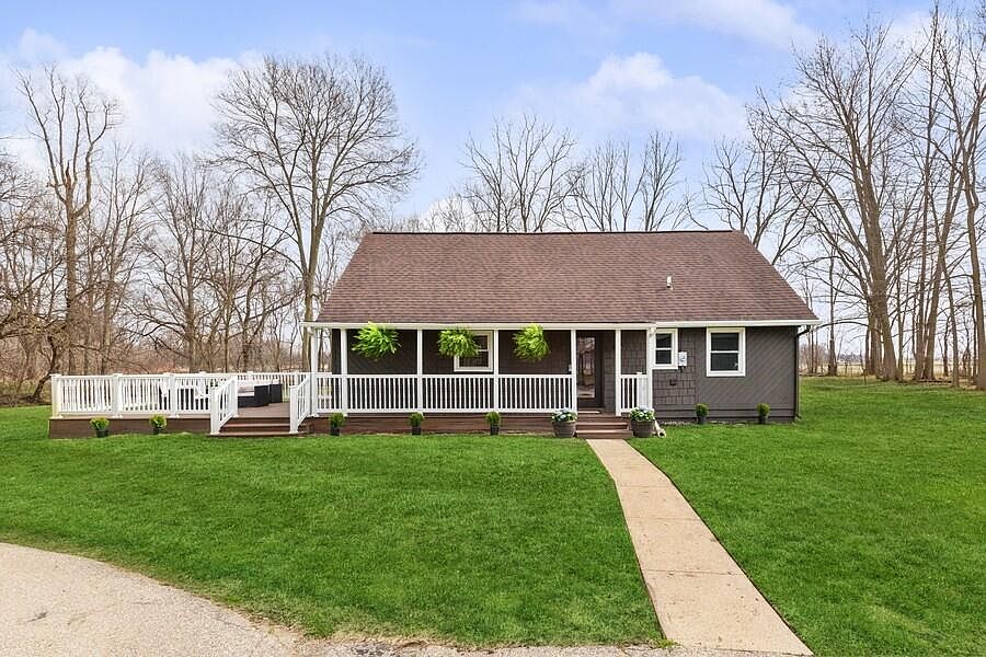 Updated finishes, 4 ton heat pump/AC mini-splits, classic wood stove, 1.76 acres of land on the N. Branch of the Galien river. House sits about 500 ft off the road. Composite deck. Detached 2+ car garage and gazebo. Previous owner reclaimed wood beams and gazebo cupola from the Silver Beach Carousel for a special touch. Unique stained glass window casts a cozy sunlight glow. Set amongst a grove of mature hardwoods, with wild mulberry, raspberry and grapes. There's even a grotto awaiting your finishing touch. MUST SEE!