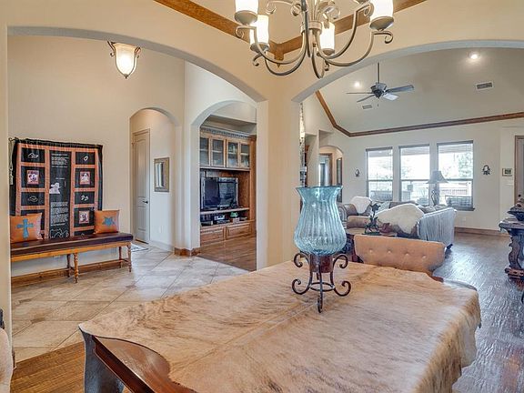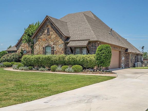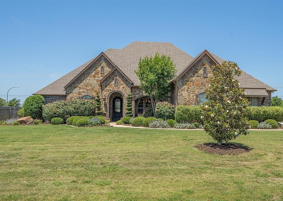 Simply stunning Bailee Custom Home, originally slated to be the model in the beautiful Spring Ranch Community in award winning Northwest ISD; Eaton High School. This corner lot open concept home features EVERY imaginable upgrade from extended hand scraped wood floors, wood beamed cathedral ceiling, floor to ceiling stone fireplace, copper sink and river rock in guest bath, claw foot vanities throughout, sink in utility room and so much more. The master bath has dual vanities with a walkthrough shower with dual shower heads and a jetted oasis tub as well. An oversized walk in closet with floor to ceiling builtins completes the en suite.