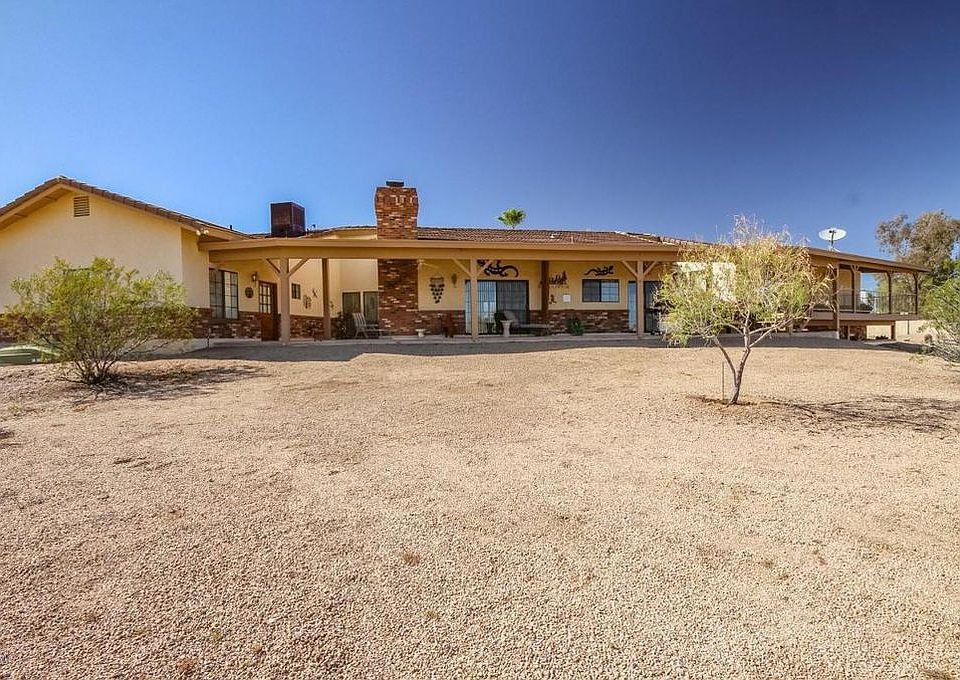 Imagine the majestic sunsets and sunrises you'll enjoy in this stunning home which has views of the Estrella and White Tank mountains plus downtown Phoenix! Located on an acre lot, this gated, cul de sac home is a potential multi-generational home and has been very well maintained. Lots of room for vehicles and motorized toys with a 3.75-car garage which also has evap cooling. This home has 4 bedrooms / 4 baths with a finished walk-out basement which includes one of the bedrooms, game room and wet bar. All levels of the home have access to the backyard, which has 5 horseshoe pits. Three AC units, wood beams throughout, and a floor to ceiling stone fireplace in the family room. Potential first right-of-refusal to adjacent 1.67 acres. No HOA!