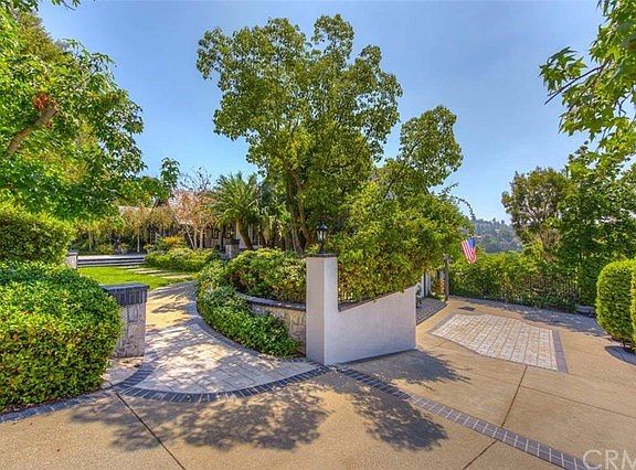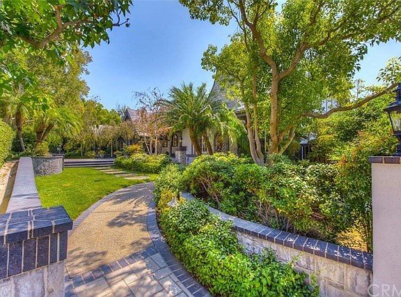 Privately nestled in the hills of North Tustin beyond gated 3/4 acre grounds, this thoroughly impressive, architecturally inspired property is perfect for the consummate entertainer with its views of the lush neighboring hillsides from gracious living areas that open to several levels of expansive decks & patios - some ideal for extended living, others for sunning around the Pebble Tech pool or gathering for a BBQ & still another that is covered for spectators to enjoy a tennis match on the regulation lighted tennis court. Home features a formal living room with walls of glass, French doors opening to the main level deck & fireplace with custom mantle. Custom wainscoted walls matching the intricate living room mantle design add elegance to the dining room, also with French doors. The island kitchen boasts granite countertops, a new cooktop, SubZero refrigerator & breakfast nook that adjoins the family room with fireplace & professional wet bar. There are 5 bedrooms & an office including the master suite with sitting area, lavish bath with spa tub & French doors. The lower level is comprised of a large living area opening to the patios & gardens, a bedroom & ¾ bathroom which opens to huge wine cellar area. Award winning schools - Foothill, Hewes & Arroyo.