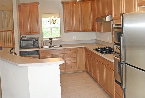 Quick occupancy is available with this beautiful 2 year old townhouse. It has 4 bedrooms, 3.5 baths, a 2 gar garage with extra parking for two more cars and a beautiful open space view. The entrance level has the garage, a bedroom (or den) and a full bath. The middle level has a living & dining room along with the kitchen, breakfast area, family room with 2 sided gas fireplace, a powder room and a deck. The upper level has 3 bedrooms and two full baths. The gourmet kitchen has a ceramic tile floor, 42 inch Maple cabinets, stainless steel appliances and a built-in oven and microwave. Neighborhood amenities include swimming, tennis, putting green, tot lots, bike & jogging trails and a shopping center just 2 blocks away.