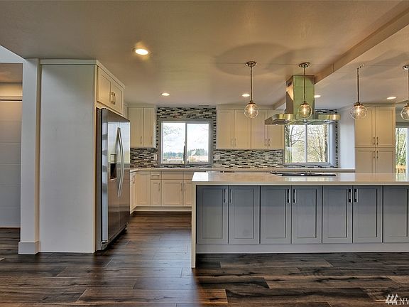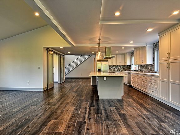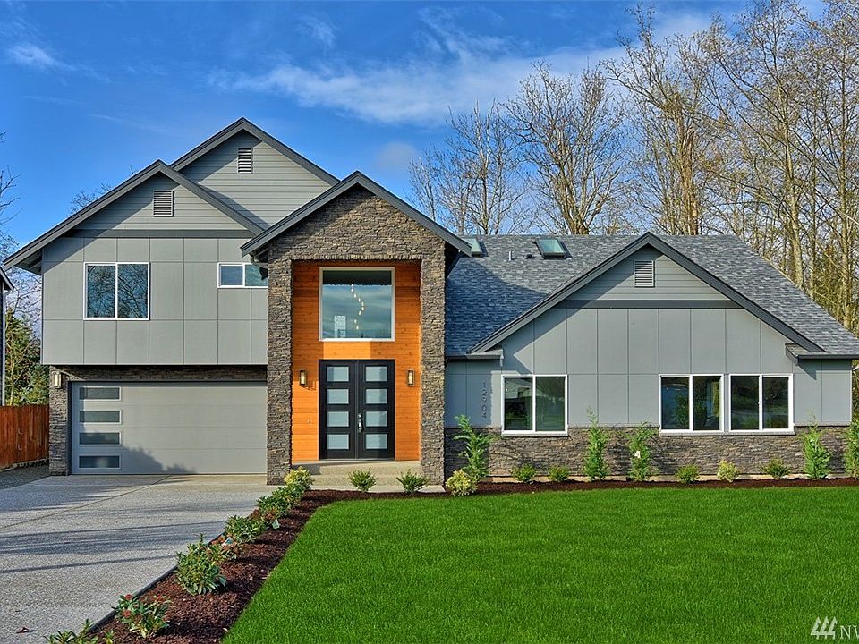 Exquisite contemporary remodel - open 5 bedroom / 4 bathroom floorplan with vaulted ceilings & skylights - on fully fenced and tastefully landscaped double lot w/RV parking. Stunning stacked stone pillared entry punctuated by cedar encased 6' x 6' window with custom chrome pendant lighting. Modern interior boasts open rail staircase, Quartz countertops, glass tile backsplash, soft pull cabinets, new stainless appliance package, jetted soaker tub & glass shower set in porcelain Italian tile.