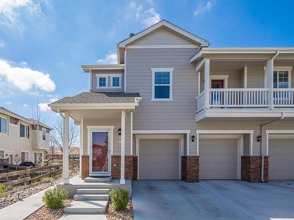 Adorable carriage style condo! Upper level end unit with 2 bedrooms, 2 full bathrooms and open floor plan. Large open floor plan set up great for entertaining. Oversized master bedroom with private 4 piece bath that includes double vanity and granite countertops. Great location with major shopping, golfing, restaurants, entertainment and planned light rail station near by. This lovely home offers engineered hardwood floors, gas log fireplace, granite countertops, 9' ceilings throughout, Rennai tankless water heater and GE stainless appliances (including washer and dryer!). Fantastic balcony with peek-a-boo mountain views and one car attached garage.