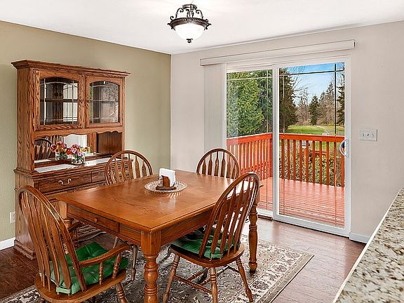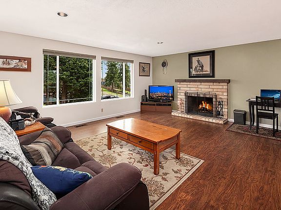 Updated spacious home in Fairwood! Main Floor Living Room W/Fireplace has an open concept flowing to the Kitchen complete with Granite Counters and Center Island/Bar. Dining Area looks to Sliding Doors and a Large Private Deck perfect for entertaining. Upstairs Master has a newly completed Walk-In Closet and 3/4 bath. 2 additional Bedrooms, Office area and Full Bath complete the Upper Level. Lower Level boosts a spacious Bonus Room W/Fireplace, Wet Bar, Laundry Room, 3/4 bath and access to the Backyard. Patio area flows to a Fully Fenced Yard, Storage Shed, Fruit Trees and plenty of room for Garden Area. All this is located on a Large Private Corner Lot!