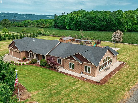 Massive 1 level home w/3,947 sq. ft. on private 2.51 flat/usable acres. Located in exclusive neighborhood The Stables. Custom built in 2011 w/custom addition of 1,547 sq. ft. added in 2017. Plenty of room to spread out w/4 bdrms, 3.5 baths, office w/closet, craft room. Huge vaulted Rec/Family room w/fireplace, wet bar, large custom windows. Large master suite w/attached bath, walk-in closet, soak tub. Outdoor amenities include: sport court, play structure & outdoor shed. Fully Fenced yard.