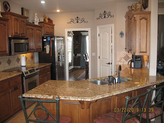 Large corner lot in Blackstone Ranch at Rye Hill. Three bedroom, two bath, three car side entry garage. Laundry / mud room. Large kitchen with lots of cabinet, counter space, with pantry. Built-in Stainless Steel appliances. Breakfast nook. Formal dining room. Den / living area has gas log fireplace, 10 FT + ceiling with deluxe crown molding. Large master bedroom with pocket ceiling. Dual vanity in master bath with spa tub, shower, and private water closet. Central vacuum throughout. Large partially covered patio in backyard with ceiling fans. Great area for entertaining family and friends. Large backyard with privacy fence.