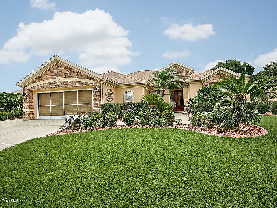 Great curb appeal. Estate lot on the Tortoise Preserve. Concrete block w/stucco & stone accents, professional landscaping with Hacienda Walls. Recently installed stone paver driveway. Open concept w/split bedroom plan. Recently remodeled master bath with walk-in shower. No carpeting .... Brazilian hardwood, laminate & ceramic tile on the diagonal. Double door leaded 8' glass entry, formal living / dining rooms. Gourmet kitchen with built-in microwave and oven, island, breakfast bar and double door pantry. GAS COOKTOP. Designer colors and fans. Crown molding throughout. Study with office system in place. 2.5 baths. Inside laundry w/cabinetry and sink. Huge 2-car garage (29' long), golf cart garage plus workshop area! Eastern exposure lanai and solar heated salt pool with birdcage enclosure.