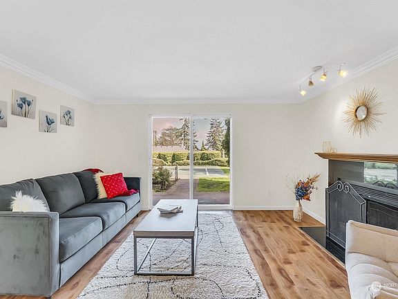 Fantastic, turn key ground floor condo with 3 bedrooms and 2 full baths in Homestead condominium! This spacious condo has been tastefully updated with newer quartz counters, stainless steel appliances, and laminate hardwood flooring. Open living and dining space with a wood-burning fireplace. Large primary bedroom with an en-suite bathroom, two more bedrooms, and a second full bath. Freshly painted. Includes full-size washer & dryer. The unit has a nice-sized patio with storage and overlooks the athletic court & clubhouse. Community amenities include an outdoor pool, hot tub, and garden space. One dedicated parking + 2 more. HOA dues include water, sewer, and garbage. Close to shopping & Boeing. Easy access to I-5 and I-405. No rental cap!