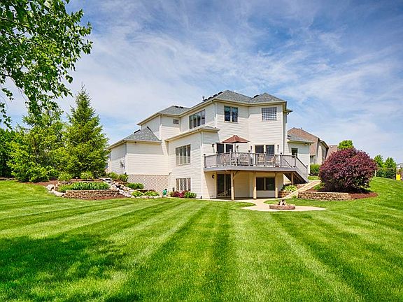 Home with wonderful architectural details with open concept, situated on cul-de-sac. Fantastic yard backs up to 2 ponds ,wooded easment and spectacular waterfall. New stamped and stained concrete patio and walkway to firepit, covered patio and maintenance free deck off the main level. Great for summertime entertaining! Fantastic views from the numerous windows on the back and side of house. Over 4,00 square foot home with a finished walkout lower level with bonus room plus huge family room and loads of storage in Lower level. New furnance, hotwater heater, tile and blinds.