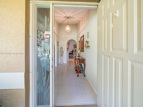 Come enjoy the serenity of Jupiter Farms in this immaculately maintained 3 bedroom 2 bath home sitting on a fully fenced in 1.25 acres. An electric gate welcomes you to this home featuring CBS construction, 2013 roof, 3 stage water filtration system, complete hurricane protection, 2 car garage, 3 set of French doors leading to large screened patio w/ private access to your personal pond on the property. Interior of the home boasts a true wood burning fireplace, family room, kitchen w/ bar top seating & passthrough window, formal dining & living room, noticeably large primary suite w/ double sinks & separate tub/shower, extended laundry room, vaulted ceilings & large windows in every room making the home wonderfully light & bright. Home has been truly loved and ready for the next owner.