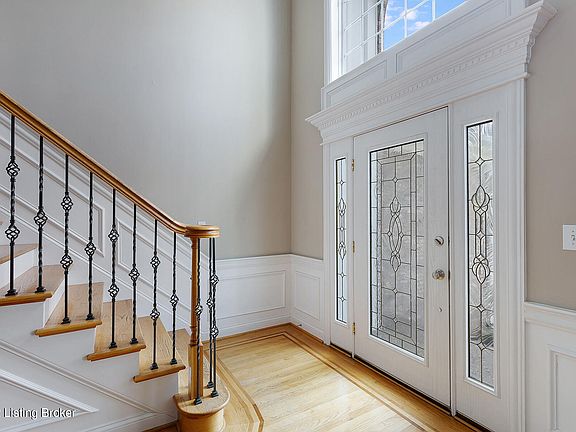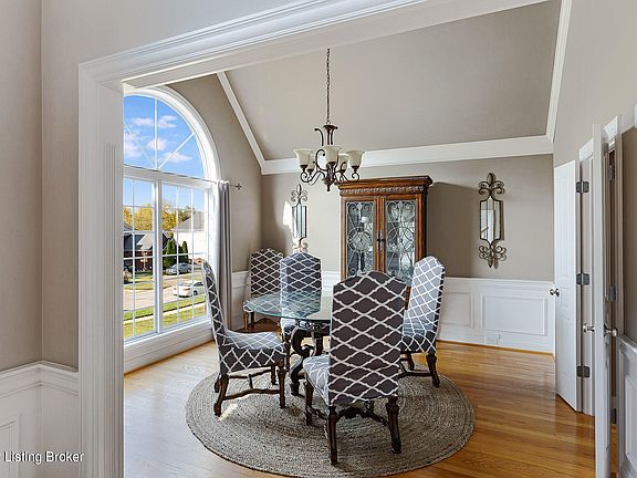 Located in the desirable Hillcrest neighborhood and part of the award-winning North Oldham County school district, this timeless two-story home is ready for the next owners to make their own, featuring gracious open-floor plan, 5 spacious bedrooms, 4.5 baths, and fully-finished walkout lower level. Past a circular driveway, guests are first welcomed into the two-story foyer with soaring ceiling, arched picture window, and sleek hardwood floors that continue throughout the first floor. Guests then arrive into the formal dining room with vaulted ceiling, bright arched window, and stunning trim details. The open floor plan of the home invites guests further into the spacious eat-in kitchen, featuring stylish cabinetry, granite countertops, convenient breakfast bar, stainless steel appliances, and walk-in pantry. The first floor folds into the spacious breakfast room with large windows and access to the home's covered porch before opening into the two-story great room with vaulted ceiling, two-story picture windows, built-in bookshelves, and gas fireplace. The home continues with a sizable first floor primary suite, featuring a gracious primary bedroom with walk-in closet, as well as primary bath with dual vanities, soaking tub, and spacious walk-in shower. The first floor is complete with an attached 3-car garage, powder room and laundry/mud room with convenient sink station. The second floor features two spacious bedrooms with shared full bath, guest suite with bedroom, walk-in closet, and en-suite bath, and a unique lofted area, perfect for homework or home office. Designed for enjoying time with family and friends, the fully finished walkout lower level offers an oversize family room, windowed billiards/game area, spacious exercise room, and fifth bedroom suite with walk-in closet and attached full bath. The lower level also features unfinished storage area as well as immediate access to the home's garage for added convenience. Made for entertaining, the home's outdoor area features a covered porch, spacious deck with dining area, and flat lawn with side yard, perfect for outside play. A fantastic opportunity for the neighborhood, this home is not to be missed.