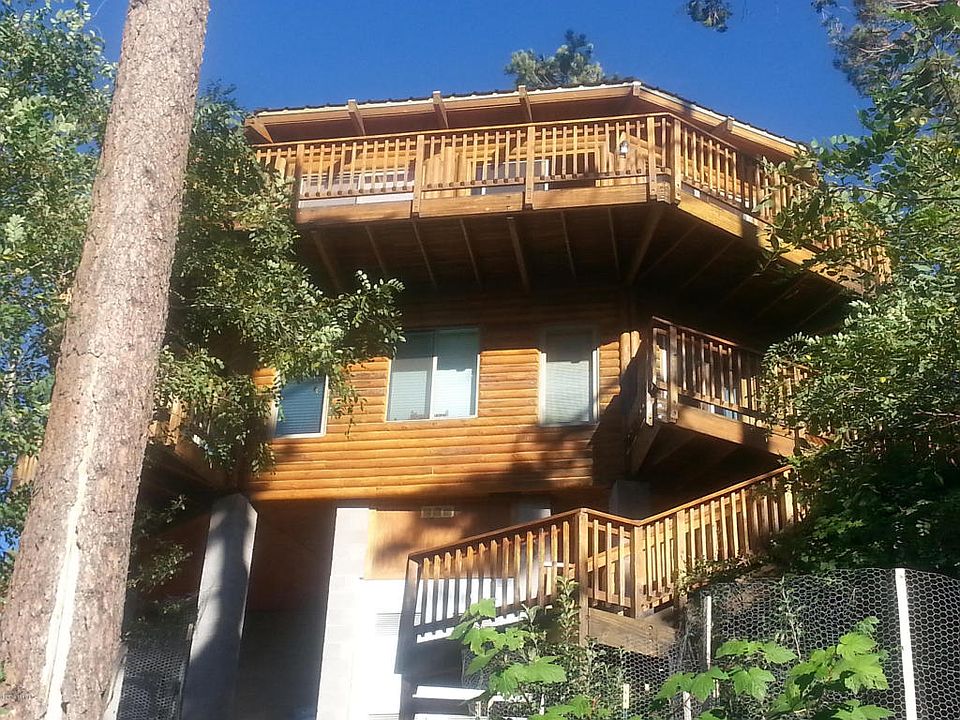 PRICE REDUCED $10K! This adorable, one-of-a-kind log cabin has panoramic views and is waiting for your family to make memories that will last a lifetime. The upper level is whole log construction, has a Great Room w/ flat screen TV, DVD player, Eating Area, Kitchen, Mstr Bdrm and Bath w/ shower. The lower level has 2 Bdrms, a Bdrm/Den and Bath with hand painted claw foot tub. Each Bdrm has a private balcony. Enjoy your favorite beverage on the deck overlooking the pines while hummingbirds visit the feeders and raptors soar down the canyon. The west facing front deck provides spectacular views of Summerhaven Village and sunsets over Mt Lemmon. The parking area accommodates 3 vehicles on a year round accessible road. Many furnishings convey with the cabin. Owner is a licensed Agent in AZ.