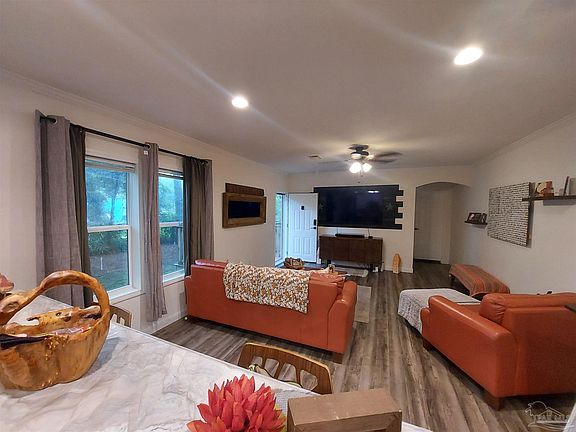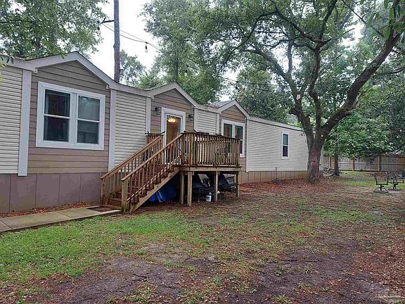 Want a vacation home at the beach where you can park your RV? Here it is! This 1280 square foot home is located in downtown Lillianjust half a mile from the Lillian boat launch and 3 blocks from beautiful Perdido Bay. The bridge to Florida is .4 miles away – giving youeasy access to Pensacola as well as Alabama beaches and across the bridge from Florida’s Tarkiln Bayou State Park. Just 9 miles toPerdido Beaches. This manufactured home sits on two large lots (100’ x 150’/ .686 acres) shaded with beautiful oak trees, palm trees,and plenty of land for an outdoor firepit, covered parking and even YOUR OWN RV. In fact, it comes with its own private 50amp RVhookup and sewer connection. Although it’s so close to the bay, it is in a minimal flood zone. This spacious home has upgraded flooring,sheetrock walls, high ceilings, crown molding, and updraft furnace/ceiling vents with tiled separate shower and large garden tub in theprimary bathroom. The exterior has Hardie board skirting and vinyl siding. Outside, you’ll love the size of this yard! Privacy fencing on 3sides and a separate parking area for your RV. This grassy lot includes a 20 ft. shipping container for added storage, and plenty of grassand shade. Mobile home was built in 2019 (tax records are incorrect) by Sunrise Homes and added to the property in 2020. If you’reconsidering the Spanish Cove subdivision – this is such a better alternative with TWO huge lots that give you green space and privacy,rather than being right on top of your neighbors.
