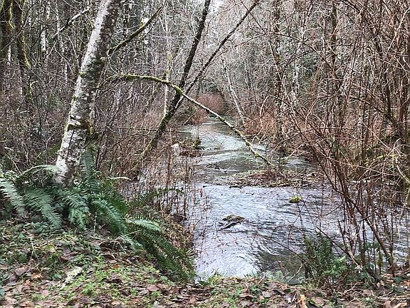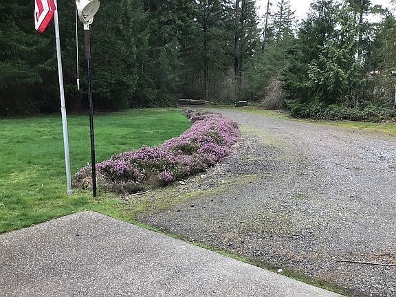 Long beautiful driveway through the woods. Custom built in 1994, it contains three bedrooms, two full baths, living and dining rooms, kitchen, library with huge picture window that looks out on the back yard and the woods, laminate floors, trails that go through the woods and down to Silver Creek. Tons of cupboards and storage.We’ve planted weeping cedar trees, pampas grass and other shrubs, heather lines part of the driveway.
