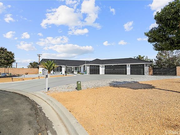 This stunning cul-de-sac, single-story home in Apple Valley has been completely remodeled and boasts numerous upgrades. Featuring brand new marble flooring, fresh paint, and a remodeled kitchen with quartz countertops, stainless steel appliances, and a large island, this home has a convenient "Chef's Kitchen" in the garage for working away from guests. With 5 spacious bedrooms, 4 full bathrooms, and 2 master suites, this home has ample space for families and guests. The backyard is perfect for entertaining with a beautiful gazebo seating area and a commercial BBQ cooktop range and sink. Additionally, the covered patio is equipped with natural gas, electricity, and additional lighting. The home sits on a large .74-acre lot and has a 3-car garage and ample driveway parking for storage and toys. This property is conveniently located near schools, shopping, and restaurants in a desirable neighborhood. The sellers have also added a new AC unit, water heater, and all recessed lighting throughout the home. Agents and buyers are encouraged to do their due diligence.