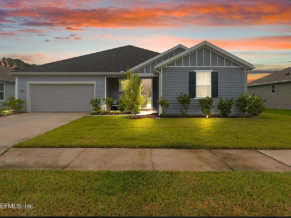 Move-in ready and beautifully designed, this stunning 3 bedroom home in Hudson Grove offers modern comfort, gorgeous finishes and a peaceful pond view. With 2,148 sqft, an open split floor plan, 9 ft ceilings, crown molding, walk in closets and stainless steel appliances, this 2022 Energy Star-Certified home feels like new. Luxury vinyl plank flooring leads to a bright kitchen with 42"cabinets, granite countertops, tile backsplash and whirlpool appliances. Enjoy abundant natural light and unwind on the 10/20 covered patio overlooking the serene pond. Located in 12909 Logans Walk Ln, you're just minutes from JAX airport, River City Marketplace, the Zoo, UF Health North, downtown, parks and major highways. Hudson Grove is a quiet, limited homesite community with no ongoing construction, perfect for peaceful living. Schedule your tour today!