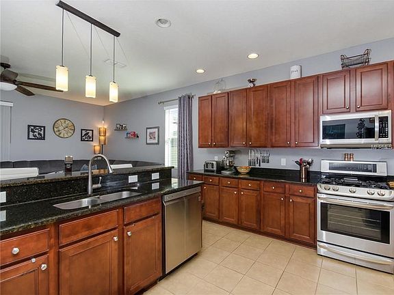 Florida living at its finest! This meticulously maintained home with water views is located in highly sought after Trinity East and features 4 bedrooms, 3.5 baths with 2,524 sf of living area and a 2 car garage. Upon entering you will pass the formal dining room and find yourself in the combined kitchen/living area with amazing views of the lake and lots of natural light! The Chef's kitchen boasts stainless steel appliances (all under warranty) including a refrigerator with French doors, convection gas range with grill and warming drawer, a wifi connected dishwasher, 42" cabinets and granite countertops as well as a breakfast bar. The first floor master suite comes with a garden tub, walk in shower, dual sinks with vanity area, tile and large walk in closet. Upstairs are the other bedrooms in addition to a bonus loft which can be used as a game or media room. The fully fenced backyard with a spacious screened in patio overlooking the pond is perfect for entertaining guests or relaxing. This home was built in 2012 with energy conservation keeping the electric bills low even in summer and includes a water softener, irrigation system, storm shutters and much more. Trinity East is a 24 hour monitored gated community with its own community park and playground and lies in a top rated school district with NO CDD fees! Conveniently close to shopping, restaurants, golf course and entertaining w/ easy access to the beaches, Tampa, TPA and major highways. Call today to schedule a private tour of this beautiful home.