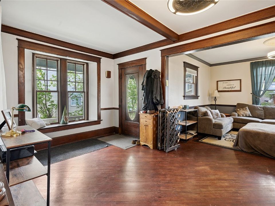 Own a piece of Marion history with this lovely 2-story home. 3 bedrooms, 3 full bathrooms, and original woodwork are only the beginning. High ceilings give the main level a grand feel that flows from living room to dining room to the open kitchen. Balcony off the primary bedroom overlooks the large fenced yard. Screened side porch, back deck, 2nd floor laundry, and large 2-stall detached garage with an unfinished loft area above that is ready to be finished as an additional living space. Priced to put some finishing touches and make this home shine. SOLD AS-IS.