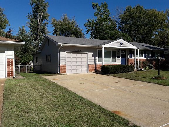 Pictures say it nicely. In addition is a 3 car in length garage (interior not pictured). This property has been city inspected and is move in ready. Metropolitan Sewer and Florissant City required trash disposal, included. All rooms freshly painted. Ceiling fans in living, kitchen and all bedrooms. New blinds throughout. Hardwood floors in dining room, living room and hall, refinished two years ago. All bedroom hardwood floors recently refinished. New windows in living room, all bedrooms. Newer counter top in kitchen. Gas stove. Hall bath has new light, vanity, sink, toilet. Master bath has new light, vanity, sink, toilet. Basement has tile floor, painted concrete walls, paneling on interior wall, additional independent heater. Separate laundry/storage area. Additional storage area enclosed under stairs. The garage is over-sized and has outlets and fan. Two doors provide entry to patio, one from house and one from garage. Large shed in fenced yard. Tenant is responsible for all utilities, cable, trash, yard care, snow removal. Additional conditions can be reviewed in lease.