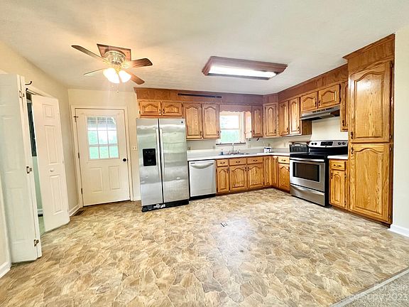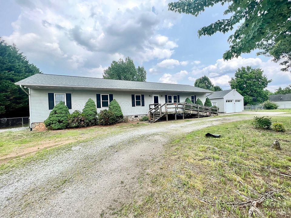 One-level living featuring 3BR/3BA and 2 full kitchens. This roomy property is situated on almost 2 acres, convenient location to Hickory, Taylorsville, Statesville. Cleared, level lot with fenced in back yard and a double detached garage. Kitchen has stainless steel appliances, plenty of cabinets throughout, fresh paint giving it a bright and airy feel. Large backyard perfect for those summer time gatherings or bonfires in the winter.