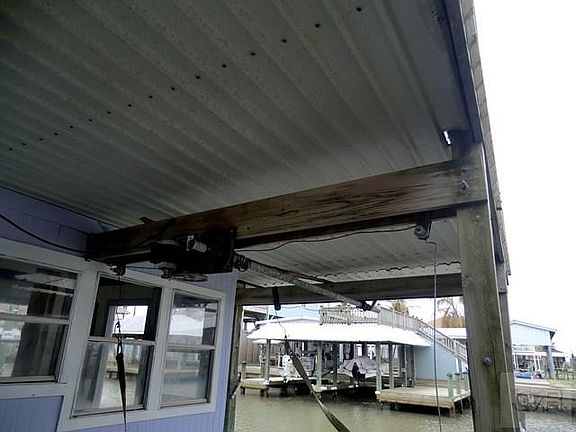 This little boat house is waiting for you to come fix it up. Outside is in pretty good shape but inside needs work. You can open it up for a screened porch area or close it in for a little get-a-way. There is a slab for a Small camper or boat trailer. There is a slip with an older hoist that was put in 2007. It is tucked away behind a wooden fence, does have a 20 ft easement for access. The best part is the deck upstairs w/ fabulous view of the Intra-Coastal Waterway.Limited access. Will NOT accommodate 5th wheels or RVs. Utilities in place.