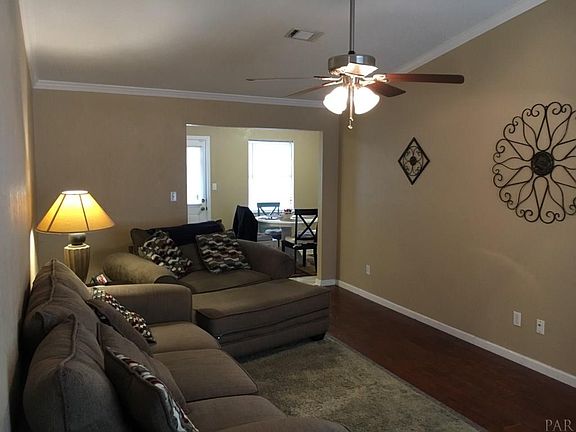 What a great home for this price! Walk in to the diagonal tile foyer and you will notice the beautiful wood laminate floors, textured walls, and crown molding. Nice neutral colors, with plenty of natural light coming through. Kitchen features tile on diagonal, stainless appliances, with refrigerator to convey. Wood laminate through the hallway, tile in bathrooms. Six panel doors throughout. Enjoy the fenced in backyard or lounge on the deck, plenty of room for the kids to roam around! Double gate on the side if you need to get larger objects in the back yard! Come see this very well maintained home today!