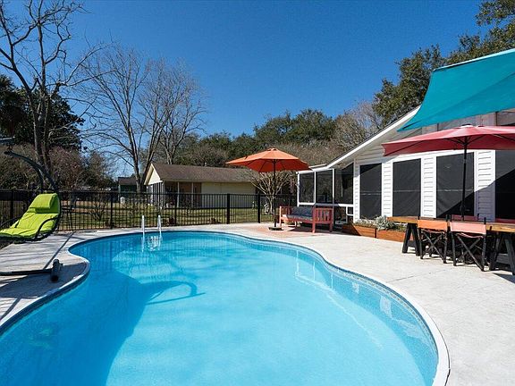 This beautiful brick ranch is nestled on a quiet street in the exclusive area of Ft. Lamar in James Island. You'll be so impressed with this impeccably renovated home, adorned with large majestic oaks and colorful camellias.This home is truly made for both entertaining and everyday living. Upon entering, you'll be sure to notice all the attention to detail! The spacious open floor plan features a custom Shou Sugi Ban (an ancient Japanese technique) gas fireplace for those chilly evenings. The stylish cabinetry surrounding the fireplace adds a touch of class.Features in the chef's kitchen include a huge quartz island with a waterfall edge and cabinets on each side and lots of seating. Also enjoy your farmhouse sink, z-line gas stove, stainless steel appliances, double pantry and classic subway tile. The kitchen/dining area leads to a huge sunroom with vaulted ceilings. There is an abundance of natural light that dances freely through the generous floor to ceiling windows. Exit the sunroom to your large screened porch to savor your morning coffee. Plan to be amazed with the luxurious pool with water as blue as the sky and clear as crystal. This relaxing oasis has an exotic touch being lined with tropical banana trees which also provide privacy and delicious fruit. Enjoy barbecuing and entertaining on the patio after a dip in your pool or a quick ride to Folly Beach for an ocean swim. This expansive yard also boasts a fig tree. Imagine those fig preserves on your breakfast toast! An impressive 720 square foot two story garage takes this storage building to the next level. Endless possibilities. There are two more storage buildings, one with electricity. Man shed? Garden center? Craft room? Studio? You decide. Back inside you'll find a fully renovated guest bath with a stunning deep soaking tub. There are two lovely guest rooms. Relax in the primary suite with timeless beadboard ceilings and a farmhouse barn door leading to the walk-in closet, complete with a charming chandelier. The ensuite and closet also boast beadboard ceilings. There's an oversized laundry/utility/mudroom off the kitchen with tons of storage. This location can't be beat. . three miles to Folly Beach, fifteen minutes to historic downtown Charleston, five miles to James Island County Park and steps away from Ft. Lamar Heritage Preserve. A neighborhood boat access is also available. This slice of paradise is a fantastic opportunity you don't want to miss!