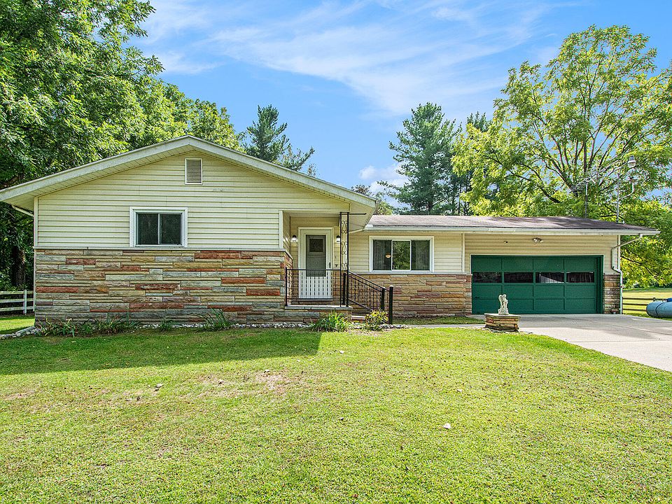 Come see this cute country ranch home on one acre in Hanover Horton Schools. This home offers two bedrooms and two full baths with a partially finished basement. Main floor laundry, hardwood floors through most of the house, offering a full basement mostly finished with a nice-sized recreation room and office There is an attached two car heated garage, a shed and a lean too for toys, The back yard is so peaceful with a covered deck, also central air and a generator plug enjoy this country setting.