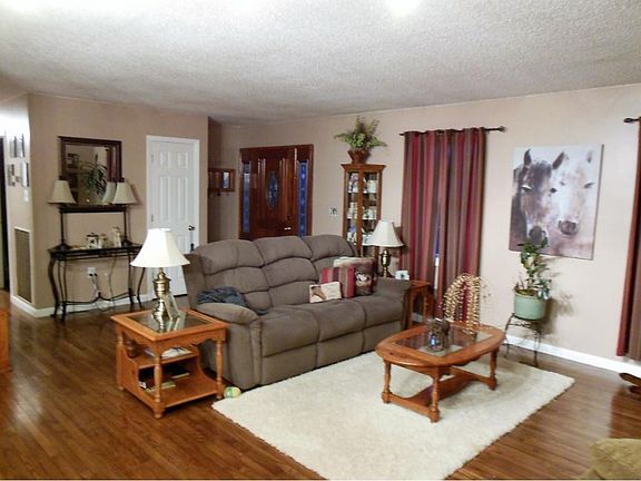 Over 5 ACRES of pasture FARM LAND with 2 fully fenced paddocks! Fenced area for dogs too! 40'X30' detached garage can be used for hay storage! Several outside water spigots and water troth for your horses! Some mature trees on property and a big covered back porch was recently added on! The beautifully maintained ONE LEVEL house has a formal living room, a dining room and a great room with a stone gas log fireplace! Kitchen boasts lots of cabinets, a pantry and 2 year old STAINLESS APPLIANCES, all to stay! AND, Crawl space has been encapsulated for worry-free moisture prevention! The land here is perfect for your horses or if you just like some land with your house! Buyers/buyer's agent to verify.